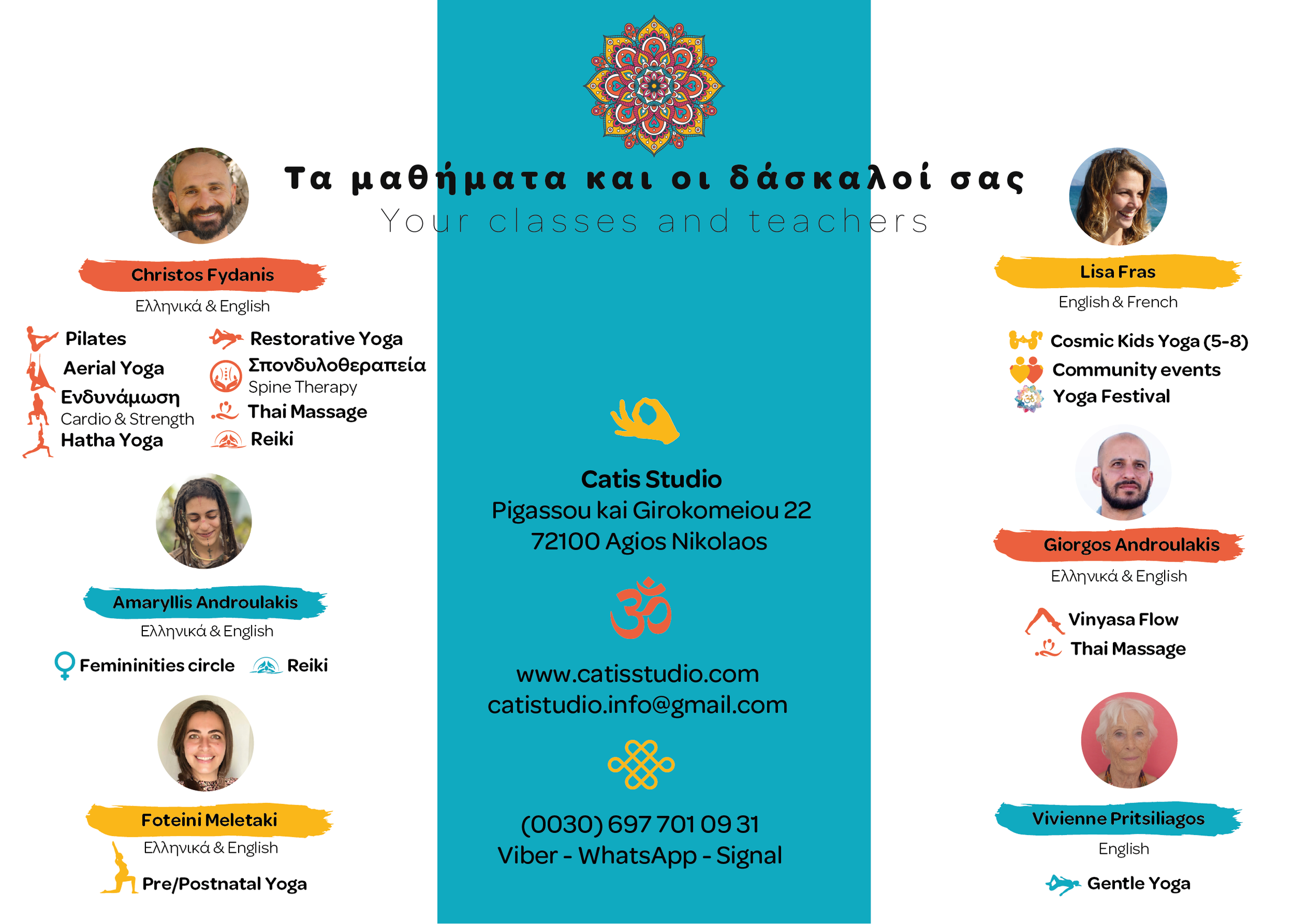 Aerial Yoga: dynamic and gravity-based classes in hammocks, happening outdoor (Almyros beach) from May to November.